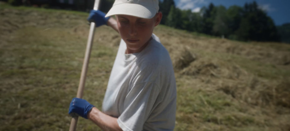 s’occuper seul de l’entreprise familiale. Il trait quotidiennement une trentaine de vaches dont le lait est revendu à une société industrielle de produits laitiers. En été, il reçoit l’aide d’une bénévole. Solène, citadine de 31 ans, découvre la rudesse du quotidien de l’agriculteur, au contact de la terre et des animaux, faisant ressurgir des questionnements à propos de notre relation au vivant. A 1580m d’altitude, Pascal et Solène apprennent à se connaître, à se parler avec honnêteté et à s’écouter alors que tout semble les opposer.